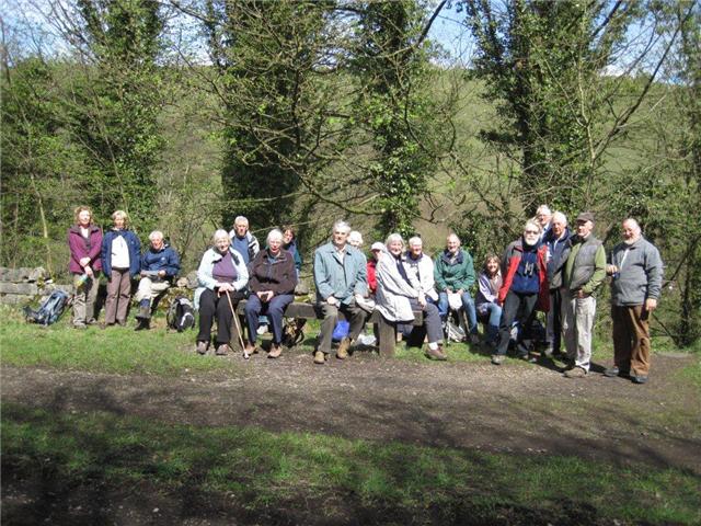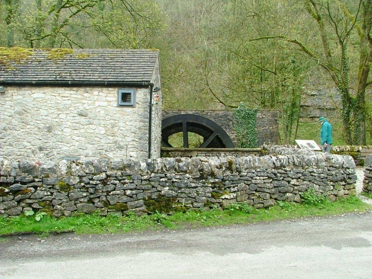 The party, which numbered twenty one, parked at Millers Dale railway station and walked down the grassy bank to the 'Anglers Rest' pub on the road to Litton. Opposite is the wheel of a former meal mill, with an interesting explanatory notice. From here we continued to: |