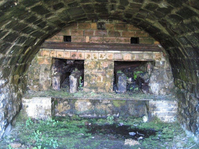 As the party proceded along the track, it was noticed that the limestone forming the sides of the cuttings was now the Millers' Dale Limestone again, the junction with the Monsal Dale Limestone having moved away to the south. Near Millers' Dale station, the party inspected the limekilns which had been preserved. They closed about 1930 when the adjacent quarry which fed them also closed due to instability. The reason ? The Upper Miller's Dale Lava was too near ! | ||