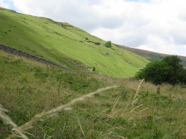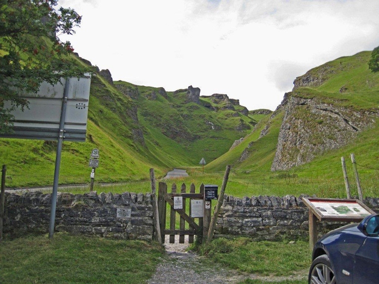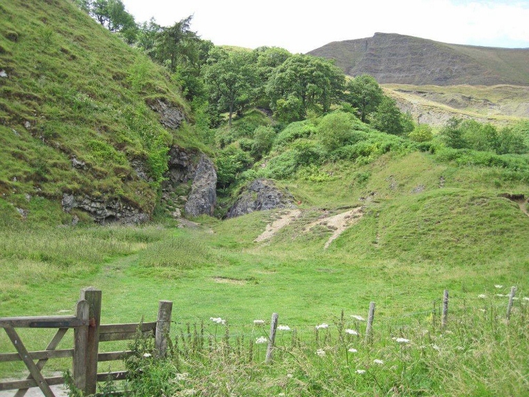View up the Winnats gorge. The crag on the right is that in the next photograph. |