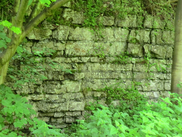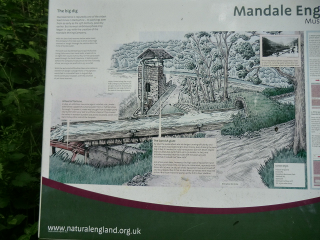 Mandale Lead Mine (15). Shortly before reaching the mine, the stone pillars of an aqueduct crossing the river once had a wooden trough which carried water to the Mandale Lead Mine where it drove a 35 feet diameter water wheel (erected in the late 1830s) used for pumping water from the mine. The leat leading to the aqueduct was taken off the river some distance upstream at Cowgate Weir (10). The water wheel was soon replaced by a Cornish-type steam pumping engine and the impressive bob wall on which the beam of the engine was supported is still standing. The mine closed in 1851, having lost a large amount of money. Near the mine entrance is the exit of a sough (tunnel) built to drain the mines. This feature chiselled through the tough limestone in the early nineteenth century took the miners 23 years (between 1797 and 1820) to drive this 2 kms into the dale side and one can only reflect on the huge labour and discomfort involved. But at least it was employment! |