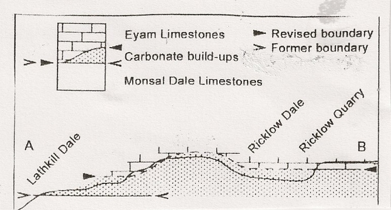Section showing mud mound. Peter Gutteridge, Mercian Geologist, 15 (4), 2003